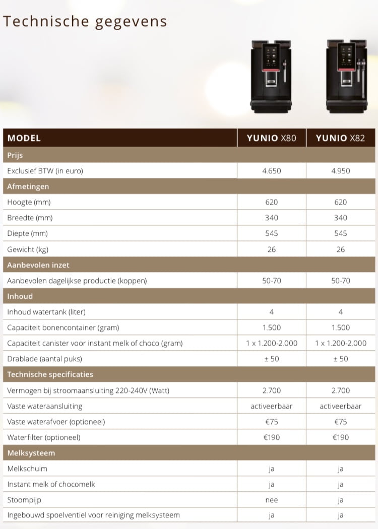 Capaciteit tot 15 medewerkers 80 kopjes per uur 2 kopjes tegelijk Melkschuim *Verse melk optioneel *Topping melk en/ of cacao