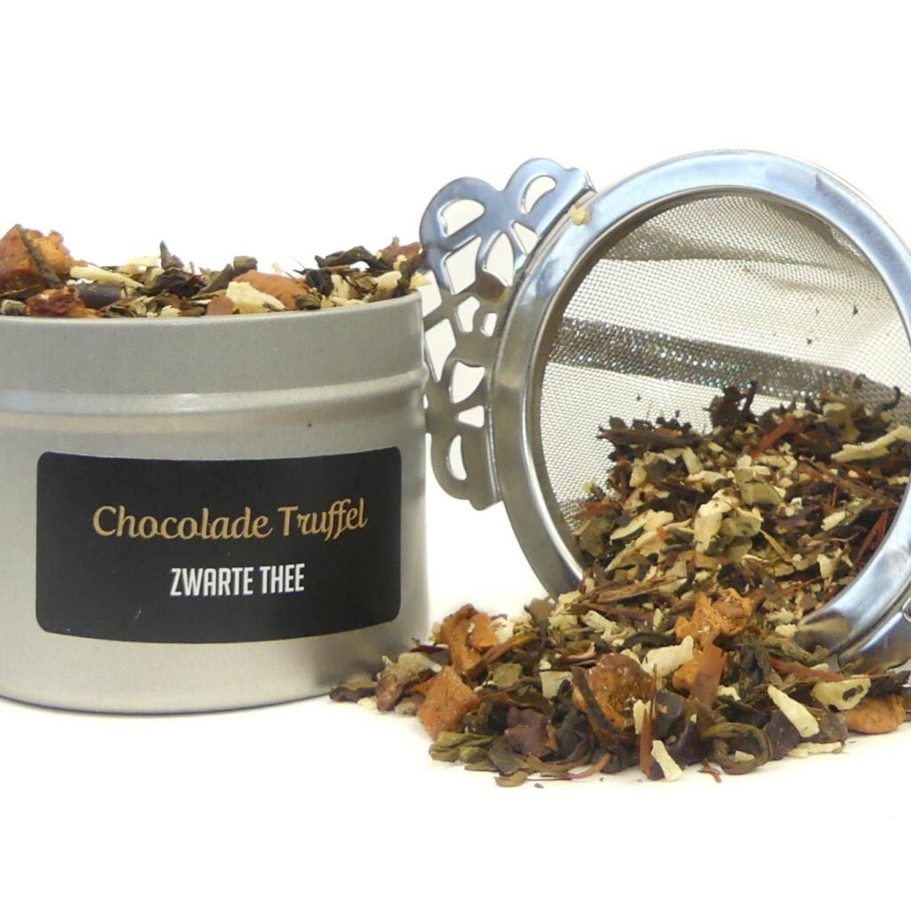 Deze combinatie van losse zwarte thee met chocolade en truffel zorgt voor een spannende smaakervaring die je zal verwonderen. Geniet thuis van deze speciale mix. Een vleugje rozemarijn geeft een lichte kruidigheid aan deze zwarte thee. Het is een luxueuze smaakbelevenis door de heerlijke chocoladetruffel.